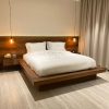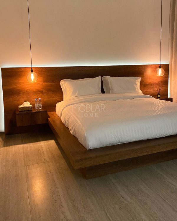 Destaca por sus líneas limpias y su elegante base flotante, creando un ambiente moderno y sofisticado. Fabricada en roble, aporta calidez natural y una presencia atemporal que transforma la habitación en un espacio de confort y serenidad.