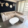 Con un diseño contemporáneo de líneas redondeadas y un tapizado en tela ovejera, la Sala Viena ofrece una comodidad superior y una estética única.