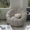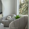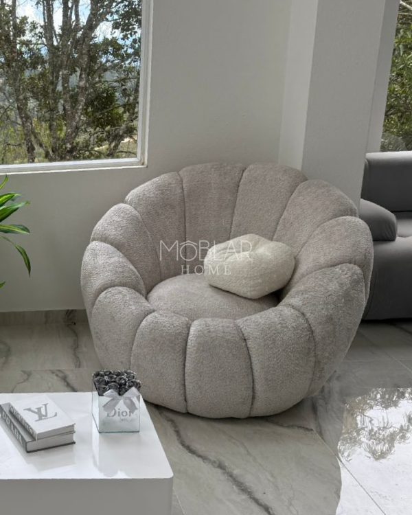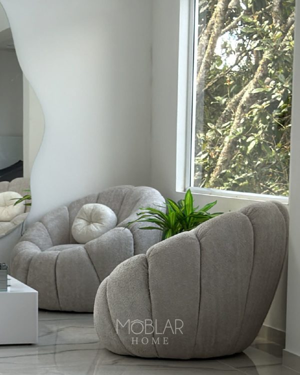 Su diseño redondeado y voluminoso aporta un toque moderno y acogedor a cualquier espacio. Tapizada en tela ovejera, brinda una textura suave y confortable, ideal para complementar tu sala o rincón de lectura.