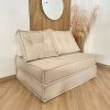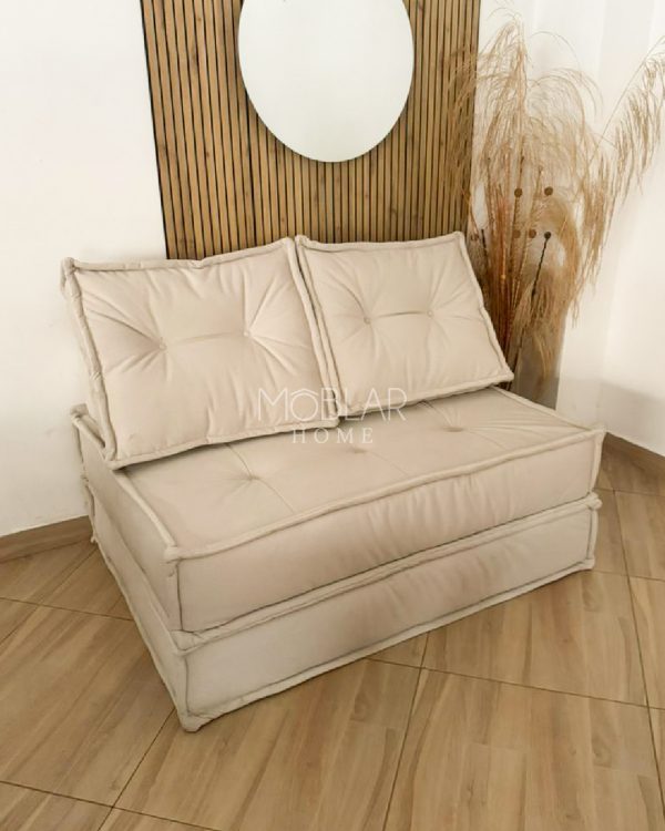 Ideal para espacios reducidos sin perder estilo ni comodidad. Su estructura firme y cojines de espaldar brindan un descanso confortable y un toque contemporáneo. Su sistema de apertura permite transformarlo fácilmente en cama, ideal para recibir visitas o disfrutar momentos de descanso.